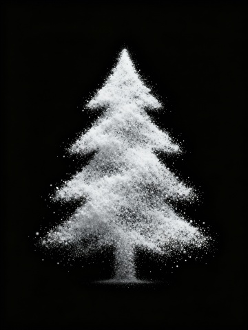 梦幻粒子构成的圣诞树,抽象单色设计,虚拟自然意境,节日氛围静谧而神秘。
