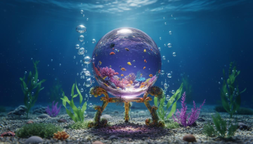 一幅梦幻唯美的海底世界插画,整体采用深蓝色调为主,搭配青色和浅蓝色的渐变,营造出神秘而宁静的氛围。画面中,阳光不再从水面上方直射,而是转变为从画面右侧斜下方照射的柔和光源,光线穿透海水形成一束束倾斜的光柱,在水中折射出斑斓的光晕效果。海底的细沙呈现出细腻的质感,上面覆盖着一些绿色的海草和形态各异的珊瑚礁。一群银色的小鱼正朝着光源的方向游动,它们的身体在光线下闪烁着微光。画面中还点缀着许多大小不一的气泡,从海底缓缓上升。整体构图采用纵深视角,前景的珊瑚和海草清晰可见,中景的鱼群和背景的海水形成了明显的层次感,光线的变化让整个海底世界呈现出一种全新的光影魅力,既保留了原有的梦幻感,又增添了一丝温暖和神秘感。