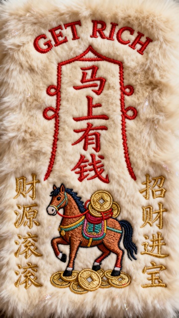 元旦新年马上发财|毛绒刺绣风格
