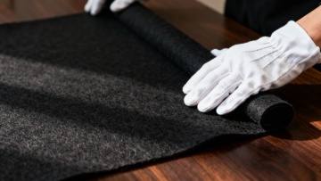一张极简风格的米白色精致布料特写摄影,画面聚焦于布料细腻柔和的纹理,布料呈现出自然流畅的波浪形褶皱,优雅地折叠起伏,光线从上方柔和洒落,形成明暗交织的光影层次,凸显出布料的轻盈质感与顺滑垂坠感,色调以纯净的米白和温暖的浅黄为主,整体氛围宁静、高级且富有质感,细节清晰展现布料的编织纹理和微妙光泽,给人一种柔软舒适的视觉感受。
