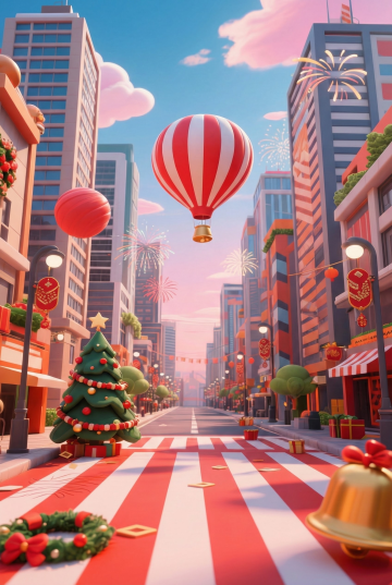 明亮金色光芒的圆月悬挂在画面上方,全景大地上,一辆复古马车行驶在古色古香的建筑群间,旁边一列现代化动车穿梭在繁华的城市之中,白鸽成群结队地从空中飞过,画面带有发光效果,整体充斥着华丽的金色和喜庆的红色,充满奇幻色彩和光影变化,具有丰富的层次感和立体感,体现繁荣昌盛的喜庆氛围,采用梦幻的大透视构图