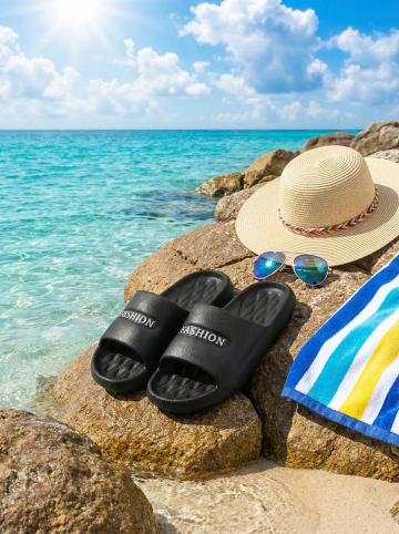 一套四个不同夏日配饰的系列图标,保持3D立体风格、圆润边角、光滑塑料质感和渐变镜片效果,每个图标拥有独特的整体色彩方案,规整排列在纯色背景上,元素包括:1. 橙色太阳镜,镜片从浅蓝渐变到橙色;2. 蓝色遮阳帽,帽檐有白色条纹;3. 绿色沙滩拖鞋,鞋底有波浪纹理;4. 紫色防晒霜瓶,带有白色按压泵头,所有元素保持一致的卡通化设计语言和光照效果,形成协调统一的视觉系列。