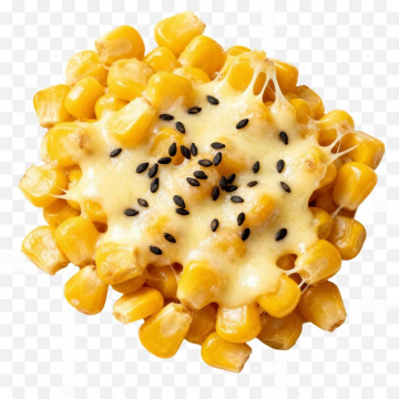 请给我几张芝士玉米的图片 加些黑芝麻 白底的图片
