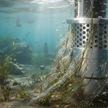 一幅梦幻唯美的海底世界插画,整体采用深蓝色调为主,搭配青色和浅蓝色的渐变,营造出神秘而宁静的氛围。画面中,阳光不再从水面上方直射,而是转变为从画面右侧斜下方照射的柔和光源,光线穿透海水形成一束束倾斜的光柱,在水中折射出斑斓的光晕效果。海底的细沙呈现出细腻的质感,上面覆盖着一些绿色的海草和形态各异的珊瑚礁。一群银色的小鱼正朝着光源的方向游动,它们的身体在光线下闪烁着微光。画面中还点缀着许多大小不一的气泡,从海底缓缓上升。整体构图采用纵深视角,前景的珊瑚和海草清晰可见,中景的鱼群和背景的海水形成了明显的层次感,光线的变化让整个海底世界呈现出一种全新的光影魅力,既保留了原有的梦幻感,又增添了一丝温暖和神秘感。