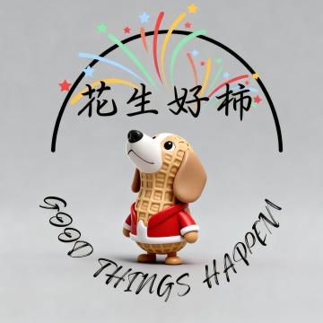 名店:花生好柿 營運:24小时自助的派对房 名主:是一隻叫花生的狗 把圖中狗變成卡通的花生形狀融入