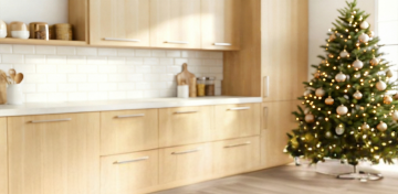 轻拟物风圣诞树,以真实树叶拼贴而成,点缀彩球与暖光灯串,窗外雪夜光影交融,营造温馨梦幻的节日氛围。