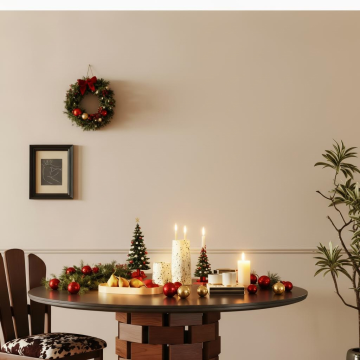 帮我去掉上面的灯体 然后桌面上增加圣诞气氛装饰