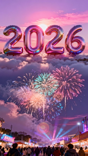 毛茸茸的3D数字“2026”搭配卡通闹钟与烟花,软萌质感融合梦幻光影,营造喜庆可爱的跨年氛围,迎接2025光辉岁月。