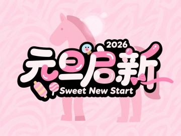 粉色系扁平风设计,融合卡通糖果元素与描边大字,搭配emoji风格点缀,营造甜美可爱氛围,呼应2026元旦启新主题。
