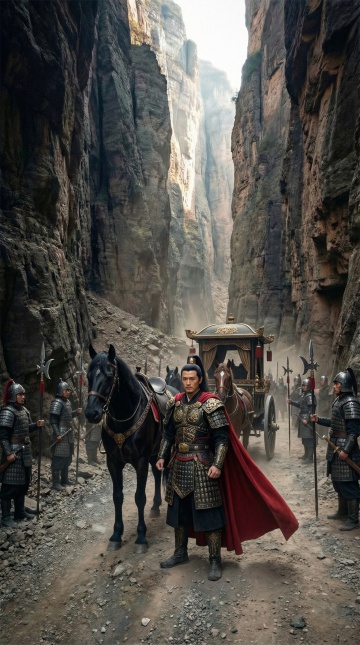 实景感与古典中式风交融,3D角色驾驭白马跃于雪峰之上,红披风猎猎,光影交错间尽显热血励志气魄,重拟物细节呼应油画质感,开阔天地彰显英雄豪情。