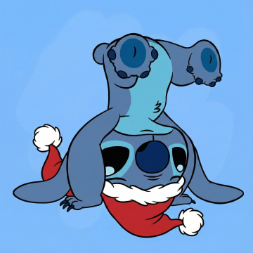 史迪奇手持彩虹伞,置身于星光闪烁的绿意中。