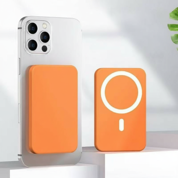 一个简约现代风格的白色充电宝,采用光滑细腻的哑光材质,边缘圆润处理,正面有品牌logo和四个电量指示灯,底部配备两个USB-A接口和一个USB-C接口,轻盈悬浮在流动感十足的白色丝绸背景上,背景采用柔和的浅灰色渐变,整体画面干净通透,光线从左上方柔和照射,在充电宝右侧和丝绸褶皱处形成自然的高光与细腻阴影,营造出优雅、科技感与质感并存的氛围,构图以充电宝为视觉中心,丝绸背景呈波浪状环绕,凸显产品的简洁设计与高端品质。