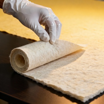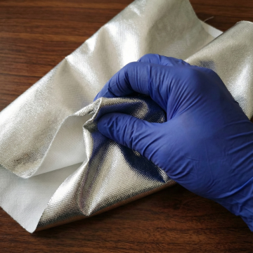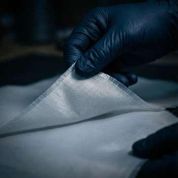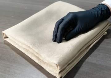 把图中的白色颗粒铺在桌上,一个戴着深色医用手套的手在拨弄