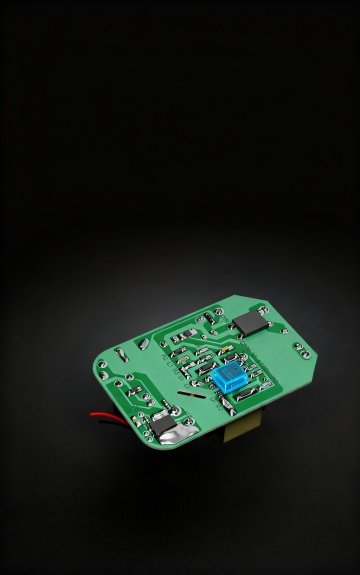 超写实3D渲染,特写镜头,一块精密电路板上整齐排列着五个蓝色圆柱形电机,电机外壳呈现光滑金属质感并带有细腻反光,底部有蓝色发光灯带环绕,电路板上布满复杂的电路纹路与黑色电子元件,部分元件点缀着橙色指示灯,整体以深邃的蓝黑色为基调,营造出科技感与未来感,光线从电机和电路板边缘柔和溢出,形成明亮的高光与渐变光影效果,背景为纯黑以突出主体的科技精密感与金属光泽。
