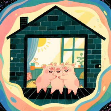 * **第三只小猪**非常勤劳,它决定用砖头建房子。虽然这需要很多时间和努力,但它不辞辛劳,最终建好了一座坚固的砖房。