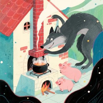 大灰狼气急败坏,但它并不放弃。它决定从烟囱爬进去,结果掉进了第三只小猪准备的热锅里,被烫得哇哇叫,最后狼狈逃走了。