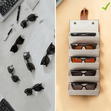 该产品为汽车遮阳板储存盒,帮我生成亚马逊卖点图,突出秒速安装 + 稳固不滑的卖点。背景以产品色调为主,排版富有创意,符合亚马逊卖点图的审美标准。