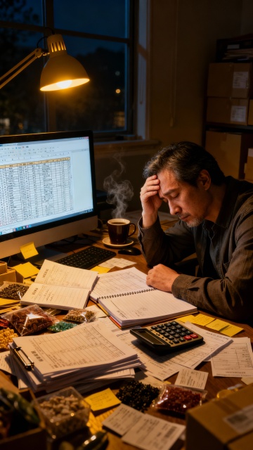 空旷的办公室背景,45度镜头,30岁左右亚裔创业者正在加班,图片尺寸2000*1000