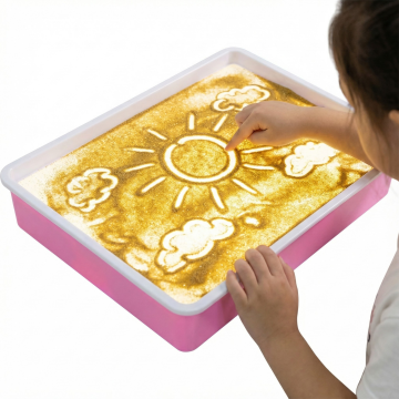 生成10张,小孩使用这个沙画箱画光影沙画,白底,1:1