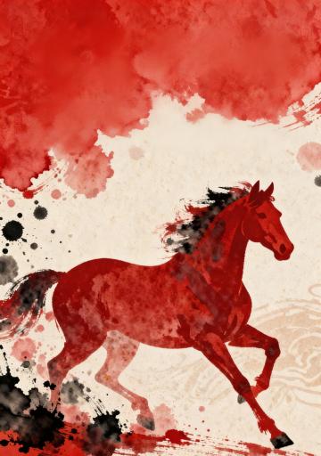鎏金粒子勾勒奔马踏浪,国潮风韵融梦幻云海,喜庆红底映中式祥瑞,节日氛围跃然纸上。