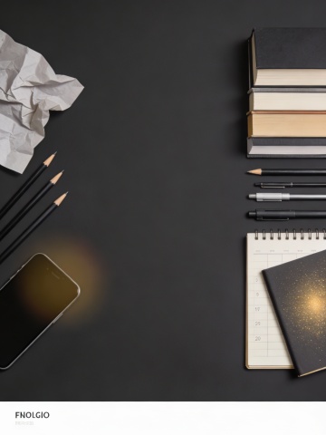 简约现代的书桌设计,温馨灯光营造舒适感,手账与书籍点缀文艺风,体现印刷风的精致细节。