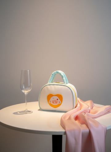 清新现代扁平风,几何色块背景,简约面料背包设计。
