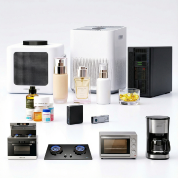 一张高质量化妆品系列海报,保持超写实3D渲染风格,纯色白色背景,柔和顶部光源产生细腻高光与渐变阴影,6个完全不同的化妆品元素规整排布成2行3列。每个元素都具有金属与塑料的细腻质感,高光泽度表面,精确的形态结构和清晰的材质区分:左上角为金色瓶盖的红色指甲油,右上角是带银色喷头的透明香水瓶,中间左侧为黑色外壳的粉饼盒,中间右侧是带刷头的棕色睫毛膏,左下角为金色边框的四色眼影盘,右下角是透明瓶身的玫瑰金色唇彩,整体视觉层级清晰,布局均衡,传达高端美妆产品的精致与奢华感。