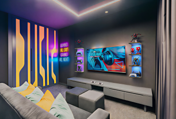 不改变桌子,生成一张充满电竞风格的室内场景图,要和桌子色调匹配,环境不要太暗,有深蓝色灯光,图片比例1:1