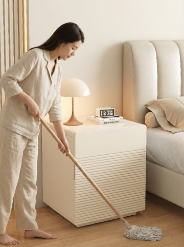 图中是魔术扫把抹布毛巾,用图中产品生成场景,场景:有人用它在室内木地板地面拖地,有明显的脏和干净对比,保持产品一致,场景氛围舒适,比例1:1,生成四张
