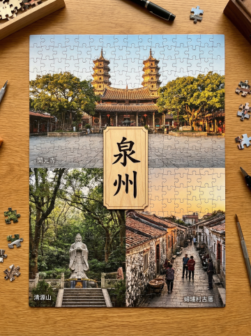 实景感中式建筑背景,大字风“泉州”醒目突出,现代与传统融合。