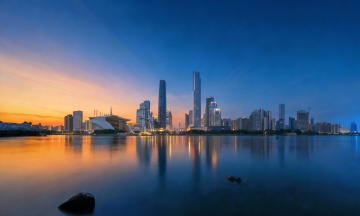 上海黄浦江畔的城市天际线全景,以东方明珠电视塔为视觉中心,周围环绕着上海环球金融中心、金茂大厦等标志性摩天大楼,建筑群在日落时分的蓝紫色渐变天空与橙粉色晚霞映照下灯火璀璨,江面波光粼粼倒映着建筑灯光,采用写实主义摄影风格,高动态范围(HDR)处理,清晰的建筑细节与柔和的天空云彩形成对比,广角航拍视角展现城市的繁华与现代感,整体色调以深蓝、紫色、橙色为主,营造出宁静而壮丽的都市黄昏氛围,视觉层次分明,主体建筑突出,信息传达直观,符合展现上海国际大都市风貌的目标。