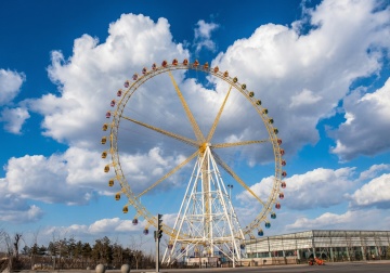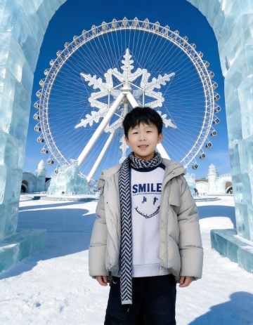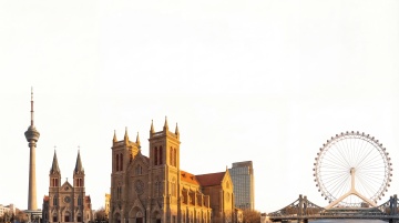 上海陆家嘴天际线全景,以东方明珠电视塔为视觉中心,其独特的球体结构与红色装饰带清晰可见,周围环绕上海环球金融中心、上海中心大厦等现代化摩天大楼群,建筑细节丰富,玻璃幕墙反射蓝天。黄浦江横亘前景,江面上有几艘白色游船平稳行驶,水面波光粼粼。整体采用写实摄影风格,色彩明快,以蓝色天空为背景,光线明亮柔和,呈现出晴朗白天的通透感。构图遵循三分法,建筑群占据画面主体,江面与天空形成自然分割,展现出上海作为国际化大都市的繁华与现代气息。