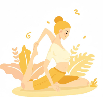 一个年轻女性躺在床上伸懒腰的插画,她闭着眼睛,嘴角上扬,面带微笑,脸颊有红晕,头发扎成一个发髻,穿着带有黄色条纹和圆点图案的白色睡衣,盖着深红色的被子,头枕着紫色的枕头,一只手向上抬起,另一只手放在被子上,纯白色背景,超现实主义风格,梦幻的光影效果,细腻的笔触,柔和的色彩过渡,富有层次感的构图,充满诗意和想象力的氛围,仿佛漂浮在云端。