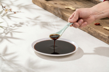 温暖柔和的自然光从古朴窗棂洒落,照亮中式木质药柜前的工作台,多种不同形态的中药材(如颗粒状、切片状、果实类)被分类盛放在木质托盘和浅碟中,一只手正用木勺将黑色种子类药材从托盘舀起,背景可见堆叠的线装古籍和盛放完整药材的陶瓷碗,桌面上铺着写有古朴文字的宣纸,整体呈现出写实的传统中医药氛围,色调以暖棕色、米色和深褐色为主,光线柔和细腻,细节丰富,具有浓厚的东方传统文化韵味和沉静专注的工作场景感。