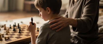 建议画面: 亲子并肩而坐或相对而坐,共同专注于一项非竞争性的任务。例如:一起研究棋局下一步的多种可能(而非胜负瞬间)、一起拼图、一起阅读一本关于情绪的书。重点在于共同面对和思考的姿态,而非结果。