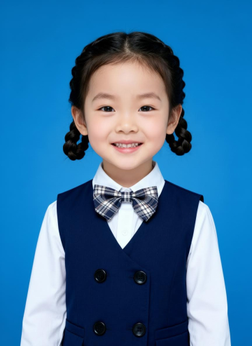 可爱小女孩,清新甜美,动漫风轻拟物设计,蓝色背景突出童真。
