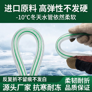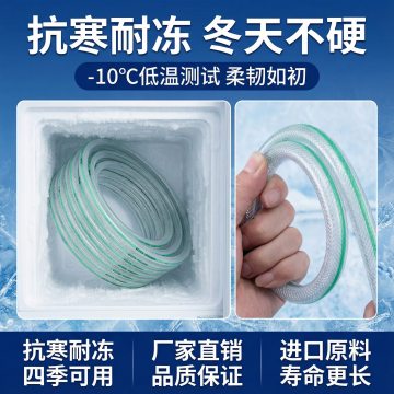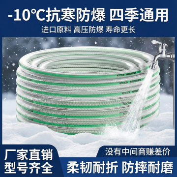 这张图片是产品主体这款产品是科麦罗PVC高压防爆软管 我需要设计10张主图在拼多多上面售卖 可以用 超低温 下雪等场景进行主图场景布局设计一个高级一些主图文案内容 进口原料 出水顺畅 高弹性 四季通用 -10度冬天不硬 防摔耐磨 寿命更长 柔韧耐折 反复折不留痕不发白 高压防爆 品质保证 耐磨抗压 使用轻松方便 厂家直销 型号齐全 没有中间商赚差价 源头厂家 抗寒耐冻 冬天水管 依然柔软