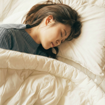 一张描绘年轻女性舒适睡眠场景的照片,女性侧身躺在床上,头枕在白色枕头,双臂环抱枕头,面容安详,闭着眼睛,嘴角带着微笑,穿着白色背心,盖着柔软的白色被子,卧室环境明亮,自然光透过白色窗帘洒入,床头有白色台灯,整体风格写实、温馨、宁静、明亮,色调以白色和浅色调为主,光线柔和自然,营造出舒适、放松、安逸的睡眠氛围,不同场景包括卧室的不同布置角度,装饰有简约的床头柜、柔和的灯光、不同质地的窗帘和床上用品,展现出多样化的睡眠背景。
