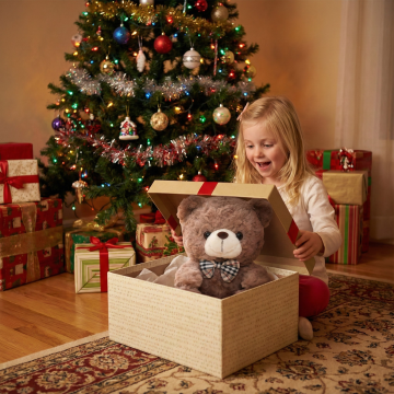 极简主义风格的儿童卧室,温暖柔和的原木色与米白色为主色调,自然光从侧面窗户洒落形成柔和的光影效果,细腻的木质纹理与编织质感的地毯和收纳篮,浅米色墙壁上挂着装饰画,不同形态和布置的木质家具(如带抽屉的储物柜、简约单人床),地面散落着不同尺寸的毛绒玩具熊,整体营造出温馨舒适、简约自然的氛围,干净整洁的空间布局,柔和的光线带来宁静惬意的感觉,不同布置的背景中保持原木色系与编织元素的统一风格。