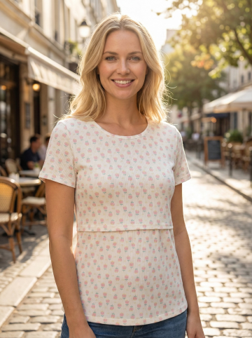 图1为衣服正面,图2为衣服背面,生成到图3的模特身上,高保真还原:极其精确地保留模特发型脸型皮肤和身上的饰品。输出图片不打光感。搭配一条时尚牛仔长裤。背景为一组套图,国外INES场景图带情人节氛围,浪漫。生成不同5张图片分别模特正面,背面,侧面等多个姿势图,模特姿势适合女装商拍的姿势。姿势自然不僵硬。高保真还原:极其精确地保留图1图2中的原始面料纹理、颜色和所有标识。无缝融合:通过完美匹配环境光线、色温和阴影方向.衣服长度到臀部。