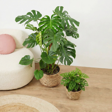 超写实3D渲染风格,纯白色背景,光线从左上方45度角照射,形成清晰柔和的物体投影和叶片边缘高光,展示6个完全不同的园艺元素系列素材集合,规整网格排布:1. 白色陶瓷花盆中的龟背竹,叶片有不规则孔洞和深绿色龟裂纹理;2. 金属材质浇水壶,壶身光滑反光,壶嘴细长弯曲,壶把为木质;3. 编织篮筐中的多肉植物组合,包含熊童子、玉露和虹之玉三种不同形态多肉;4. 透明玻璃花瓶中的水培绿萝,根系在水中清晰可见,藤蔓自然垂落;5. 黑色哑光花盆中的琴叶榕,叶片宽大呈提琴形状,叶脉清晰突出;6. 木质托盘上的园艺工具套装,包括小铲子、耙子和修枝剪,工具手柄为防滑橡胶材质,所有元素保持统一的高清晰度、细腻质感和一致的光影效果,整体构图平衡对称,每个元素独立清晰。