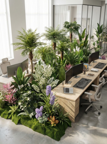 参考这张照片,帮我设计九张发布小红书办公室造景的图片