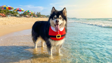 软3D风毛绒小狗挂饰,搭配格纹围巾,萌趣十足,营造温馨喜庆的圣诞氛围,卡通感与面料质感交融,尽显可爱。