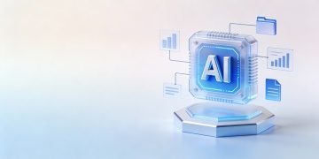 未来感与科技感交织的3D风插画,采用清透玻璃质感与轻拟物设计,展现数据流动与智能互联,几何结构突出体积感,蓝色调传递高效与现代。