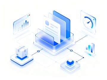 3D风格的宣传界面,画面的主体居左,主体是一个带有图表、数据模块等元素的白色立体分层面板,周围漂浮着蓝色统计图表形状物件,玻璃磨砂质感。画面右侧留白。整体色调以白色为底,搭配蓝色元素,背景是炫彩浅蓝色,呈现出简洁、现代、科技感的视觉效果