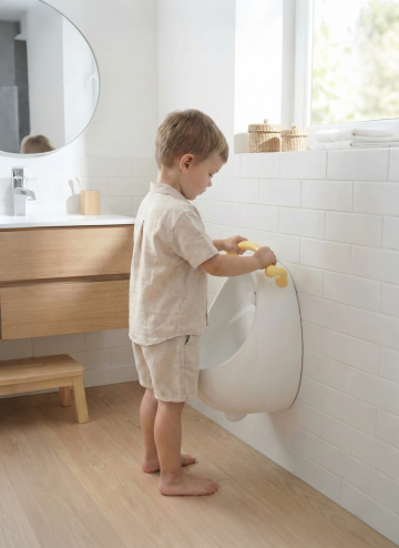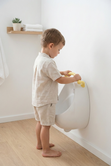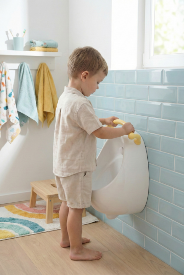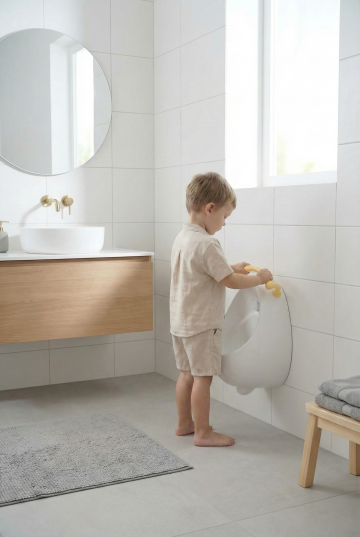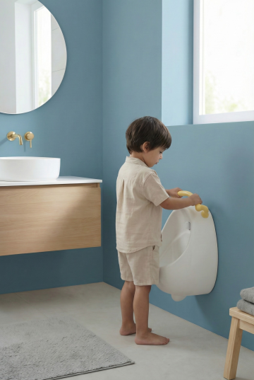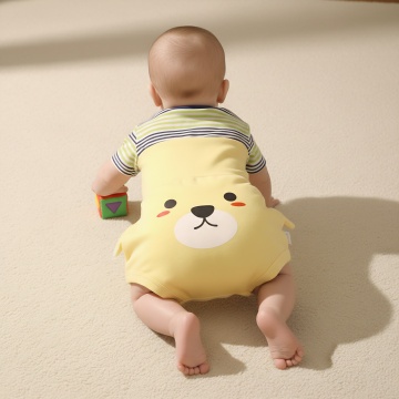 在婴儿床中添加一个6-12个月大的婴幼儿,宝宝穿着浅色连体衣,侧身坐在床的一侧,小手轻轻触碰床头软包,表情可爱,营造温馨的互动感