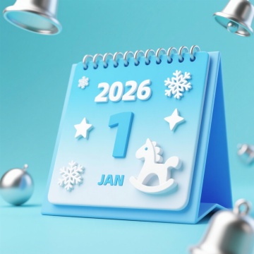 清新蓝调3D日历,软质浮雕质感,搭配雪flake与摇马,营造梦幻可爱新年氛围。