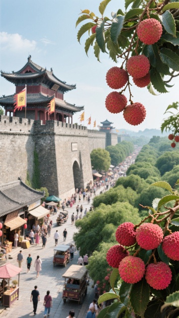 长安的荔枝搭配江南的美景,描绘出一幅绝伦的画卷,荔枝鲜活长安繁华共呈美丽景色,荔枝衬托盛世繁华。