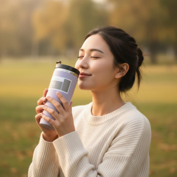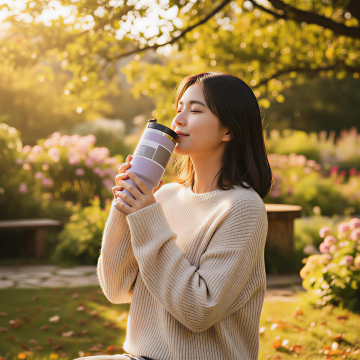 现代感办公场景,清新舒适,性冷淡风设计,轻拟物风水杯点缀,简约时尚。