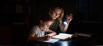 请用写实风格生成以下图片,比例2.3:1,不要任何文字,构图与意象: 建议采用“冲突与和解并存”的温暖场景。 特写镜头: 一只孩子的小手紧紧攥着一枚棋子(或一个拼图块),表情失落;同时,一只妈妈的手温柔地覆在上面,形成包容与引导的视觉焦点。 场景画面: 孩子背对镜头坐在散落的棋盘/积木前,肩膀微耸(表现沮丧),家长从侧面或后方走近,手轻轻搭在孩子肩上,光线柔和,背景温馨。